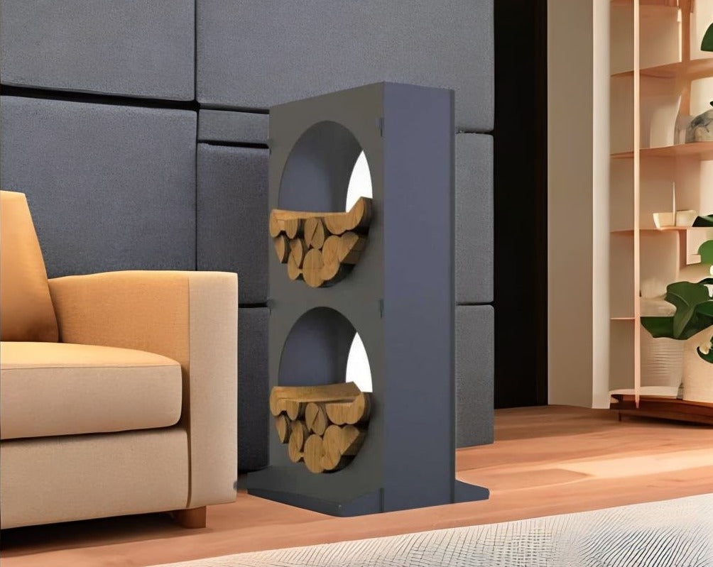 Introducing the Double Circle Firewood Rack – a contemporary and functional solution for your firewood storage needs, expertly handcrafted in Britain. This unique firewood rack features an innovative double circle design, combining modern aesthetics with practical utility, making it an ideal addition to any living room or outdoor space.
